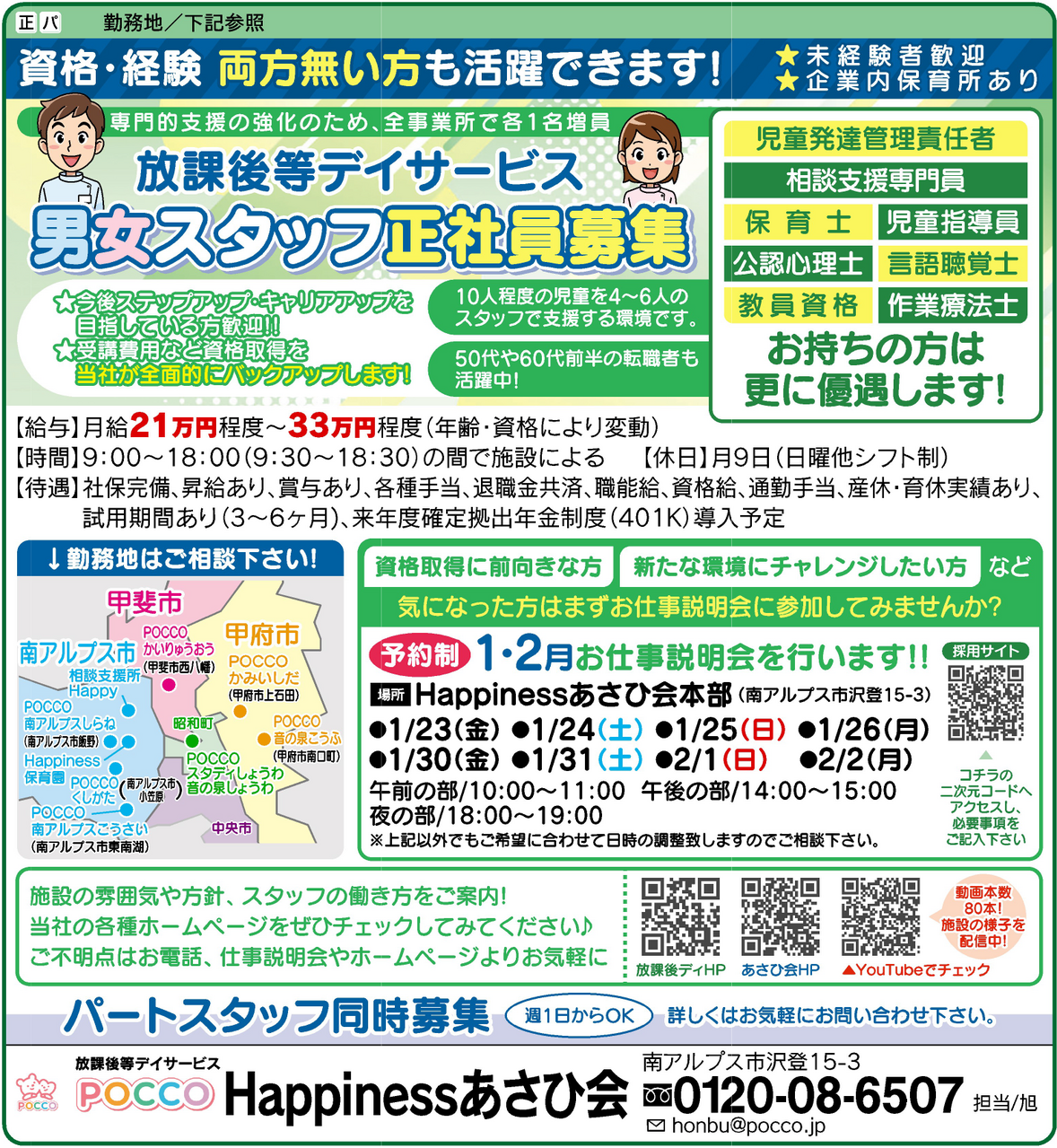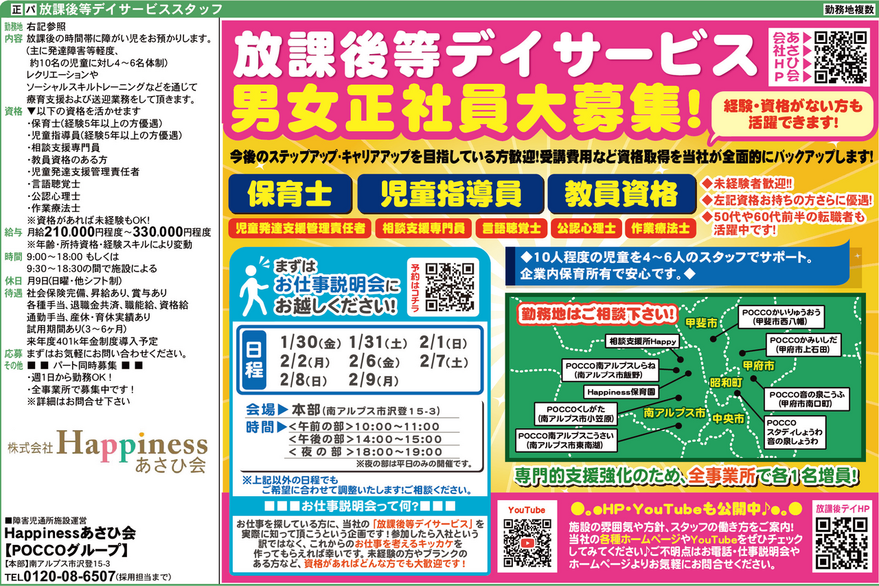 1/23-26&1/30-2/2&2/6-2/9開催◇放課後等デイサービス正社員大募集